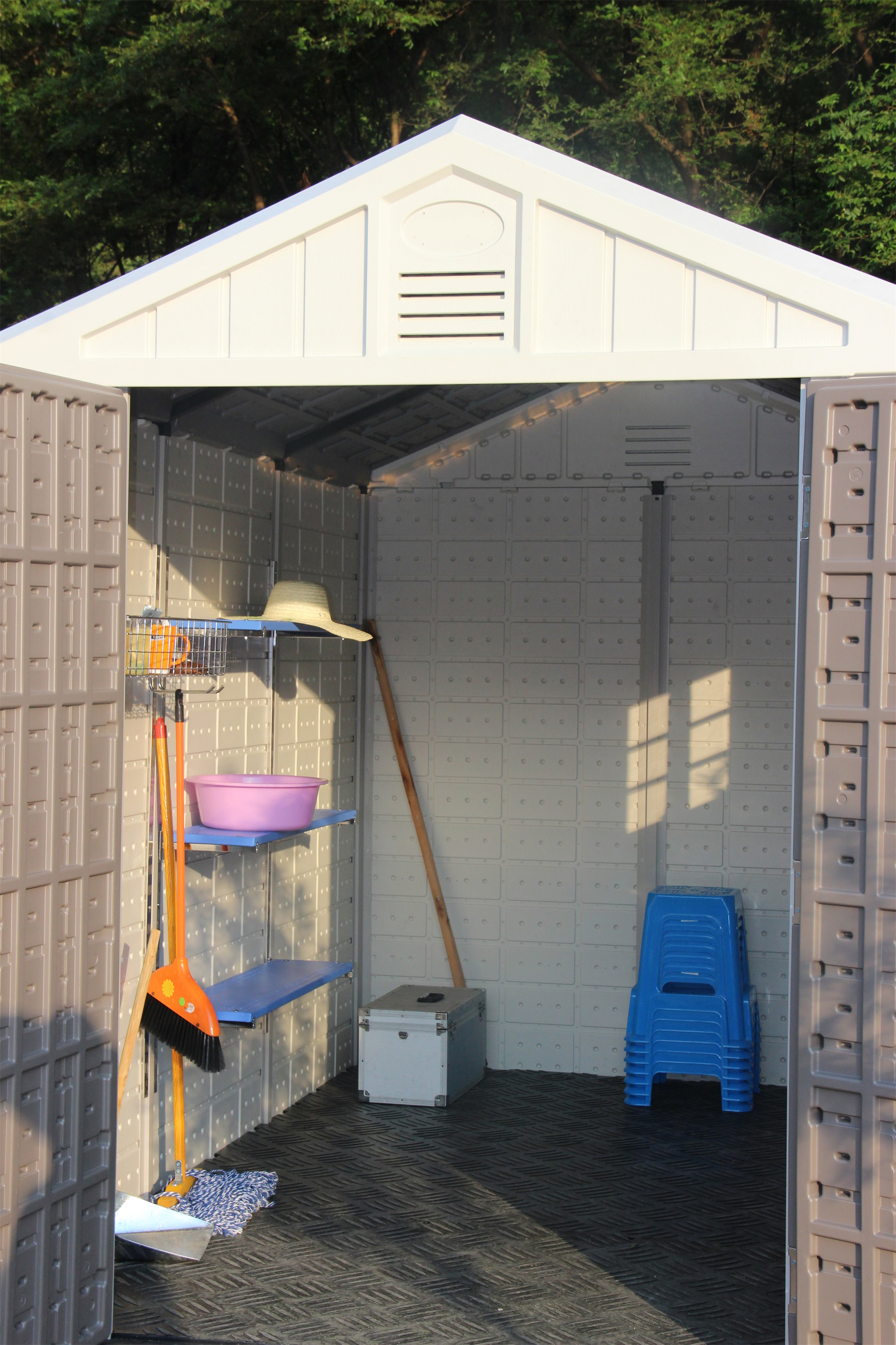 Пол выдерживает большие весовые нагрузки, в том числе тяжелую садовую технику