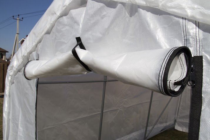 GardenDreams, в отличие от теплиц из поликарбоната и других неразборных конструкций, позволяет с легкостью и всего за 15 минут (!) снять тент на зиму (для того, чтобы почва сохранила естественный баланс микроорганизмов и не перемерзла зимой без снега).