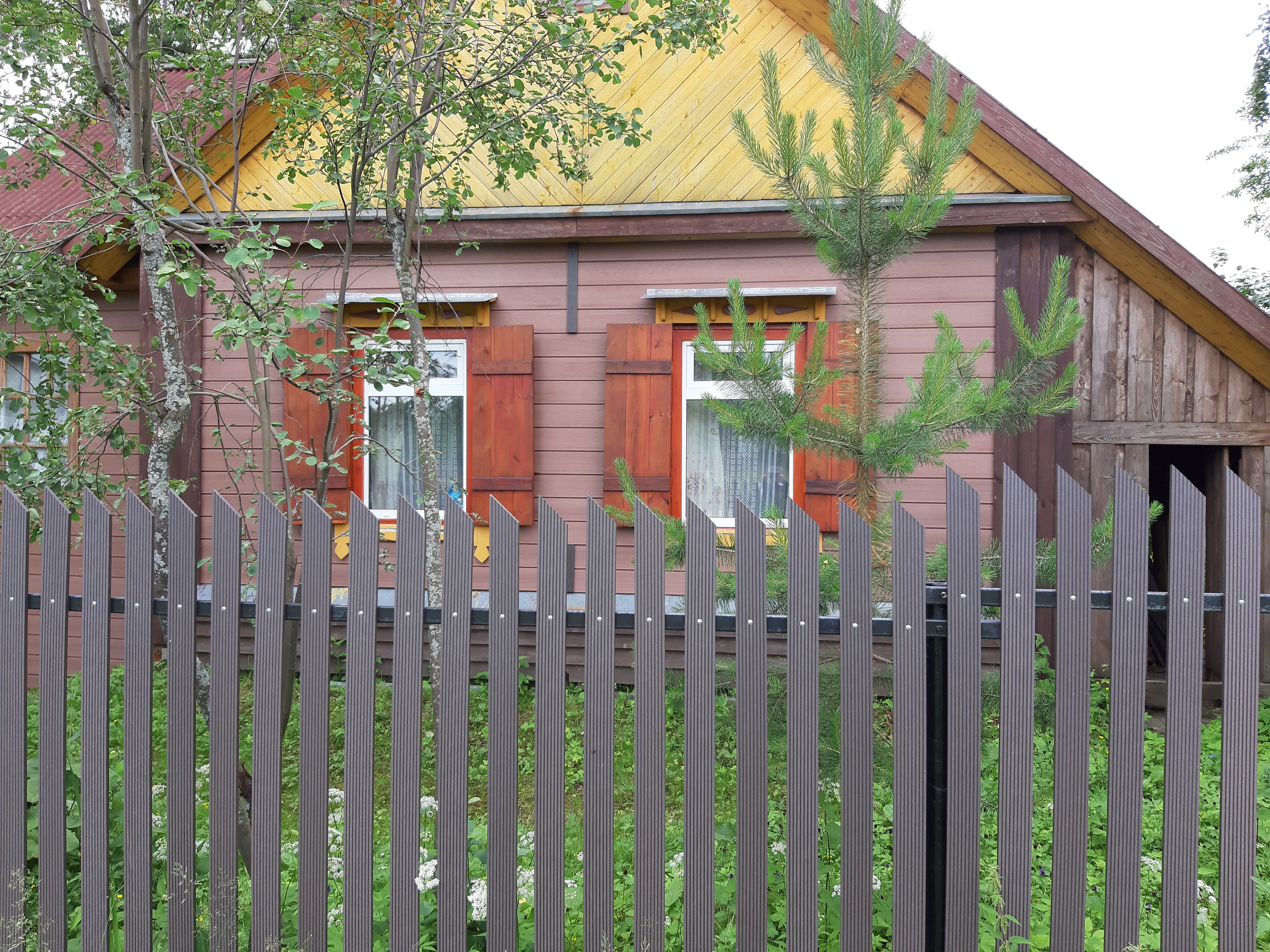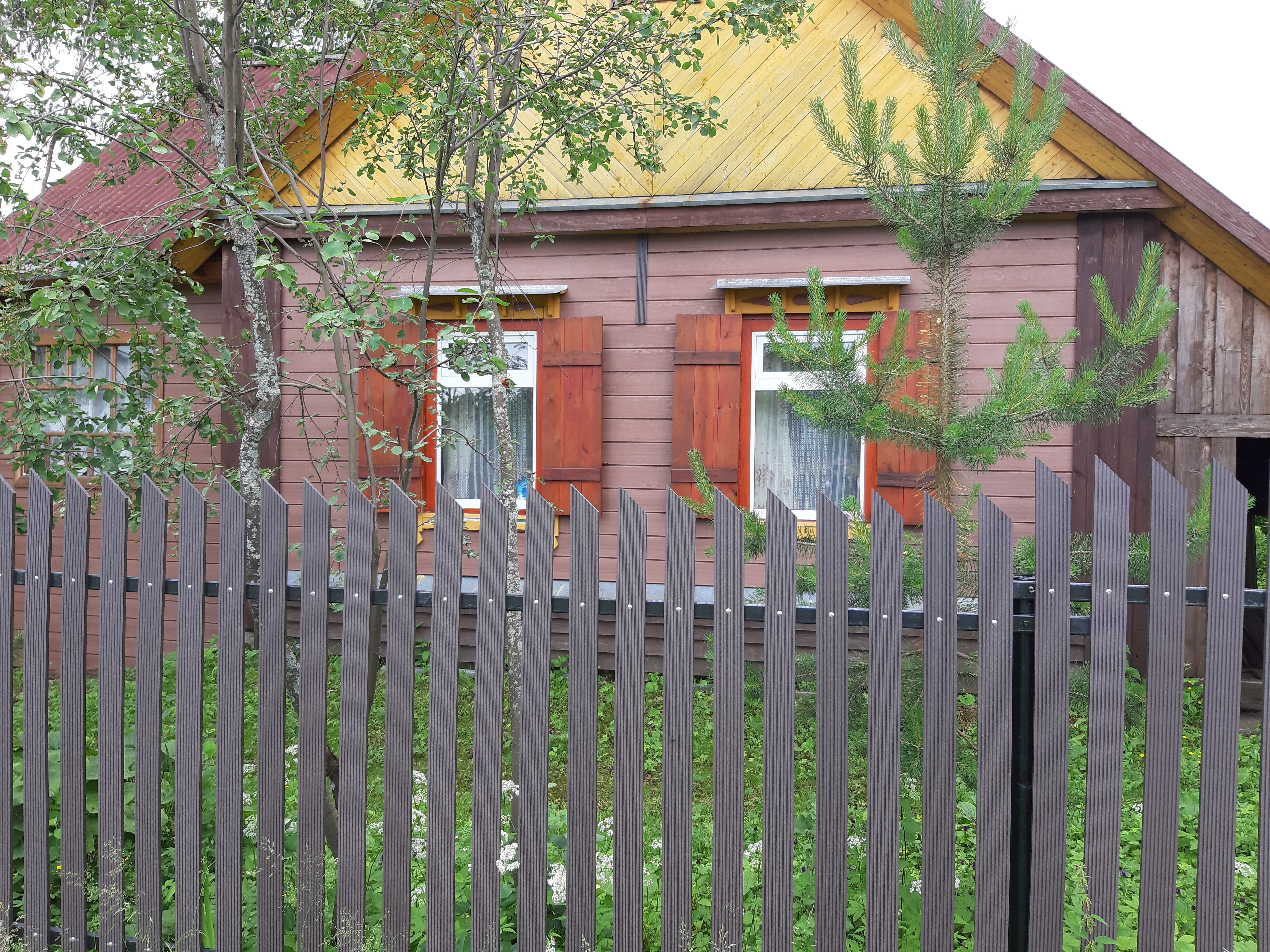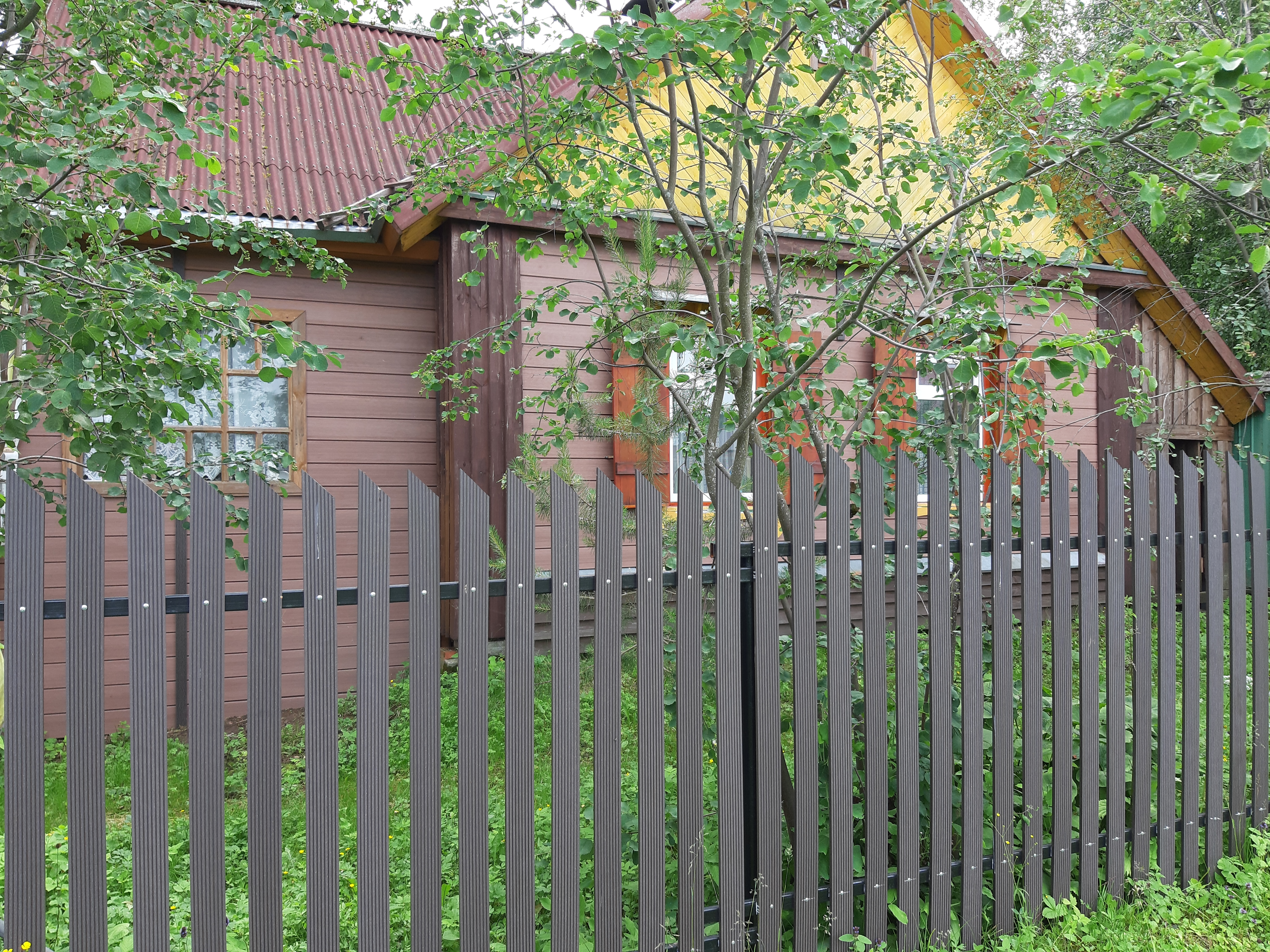 Для реализации этого проекта, нам понадобился специальный узкий полнотелый штакетник из ДПК. Ведь у владельца не так много времени посещать дачу и постоянно поддерживать деревянный штакетник в идеальной форме. Для ДПК-же такой уход не требуется и достаточно просто использовать по мере необходимости специальное средство для очистки ДПК и средство для защиты декинга. И он прослужит вам долгие годы не потребовав ничего дополнительно.